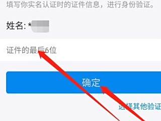 第三步,现在就该验证方法了,看到屏幕上的名字是自己确认无误之后,然后输入身份证的后六位数字,输完之后点击确定,然后就是人脸识别界面,识别面部之后直接进入下一步。