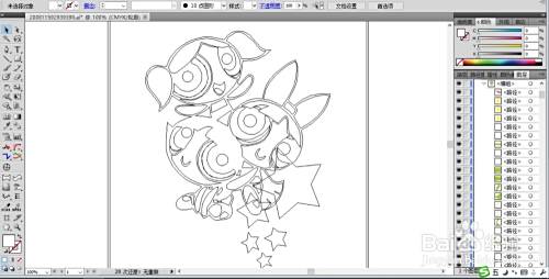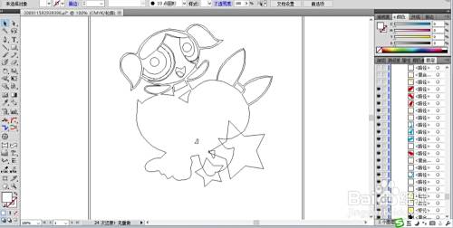 先用钢笔绘制出整个动漫小孩的剪影,主要是三小小孩的头部的边缘细节的呈现。
