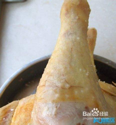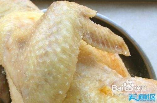 慢慢将盐拔开,小心别弄破鸡皮。