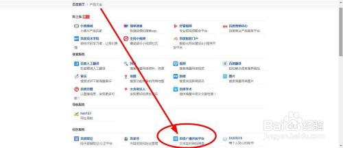 再打开百度,找到百度产品大全,再在里面目录找到“百度广播开放平台”,点进去使用。