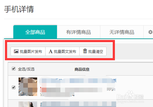 先勾选你要发布手机详情的商品,点击批量图片发布或批量图文发布,即可一键批量生成手机详情页了。