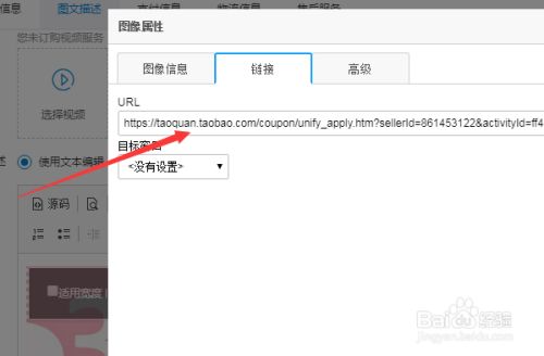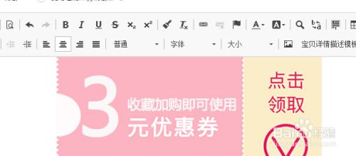 打开我们要投放优惠卷的宝贝,或者发布宝贝时在详情页插入优惠卷图片。点击图片选择编辑—链接—输入优惠卷链接—确定