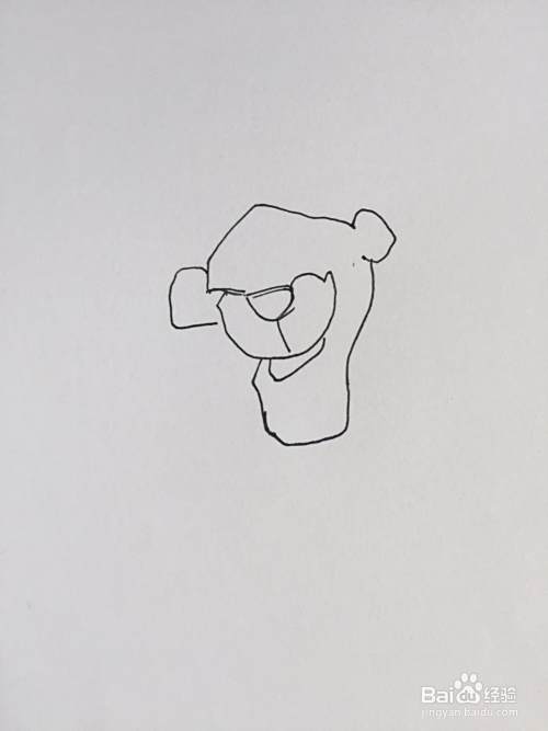 先找一幅要临摹的画,画出其中的关键部位。比如这幅老虎的鼻子,可以先画在中间。