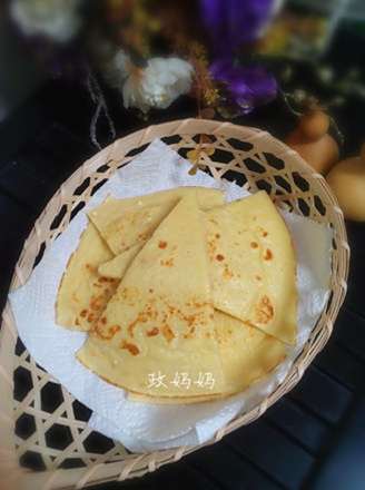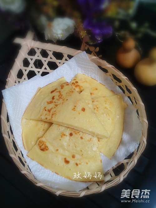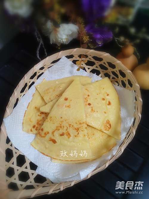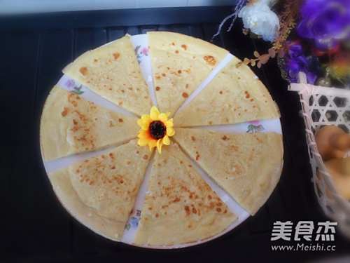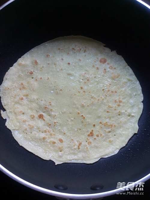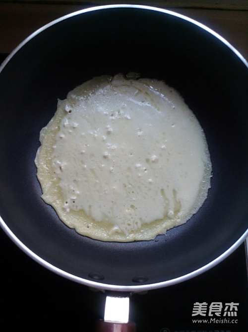 不沾锅加入一点油热后,加入面糊转动锅子,摊成薄饼。