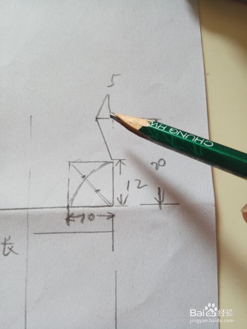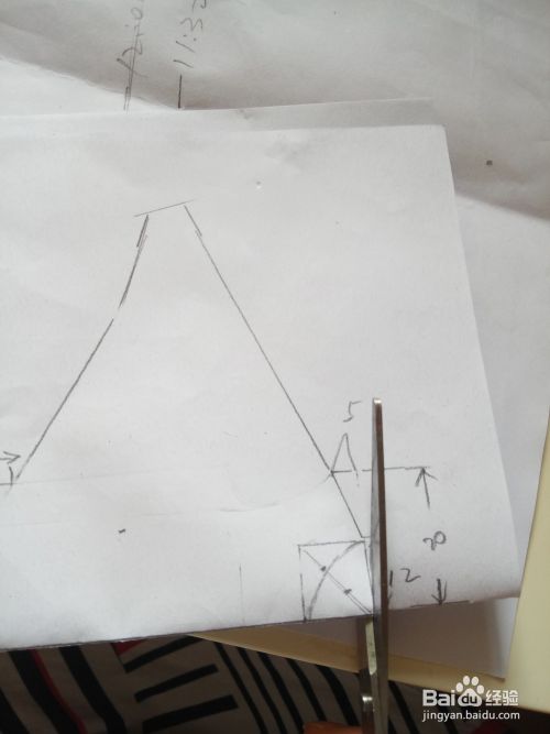 从衣服,底边向左20厘米,确定一个点。连接这个点到袖口线。
