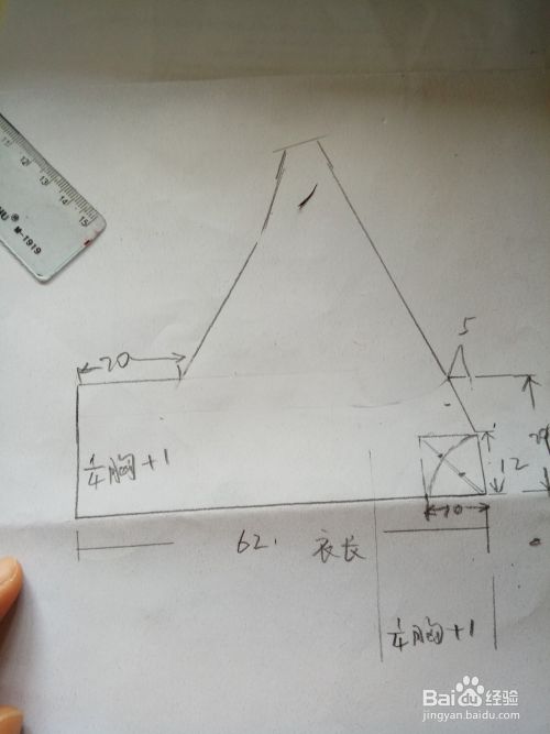 然后确定衣服的宽度,的宽度是,1/4,胸围加1厘米。