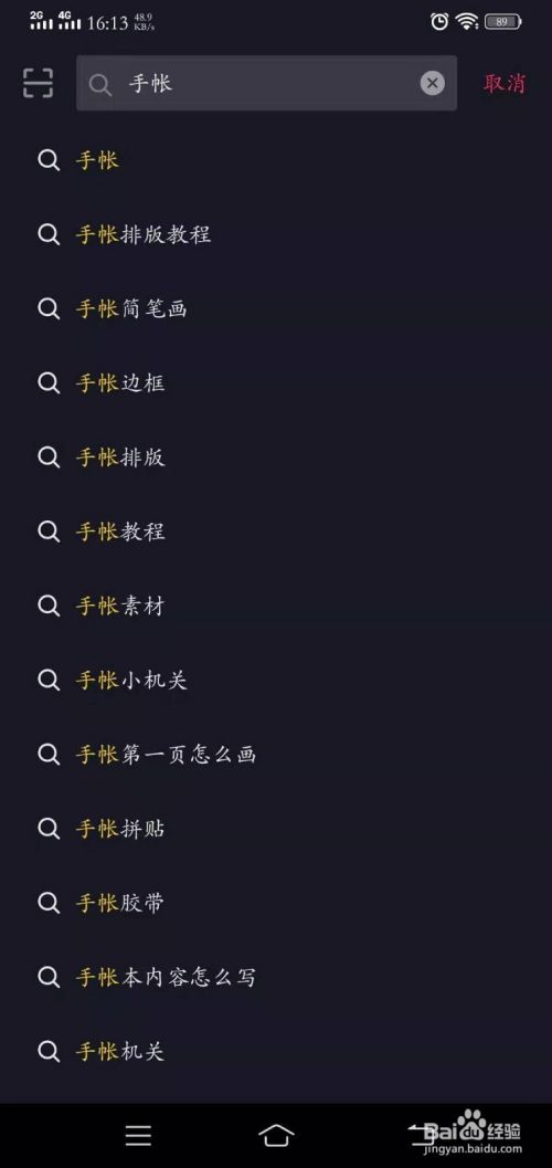 点击搜索框,搜索手帐。