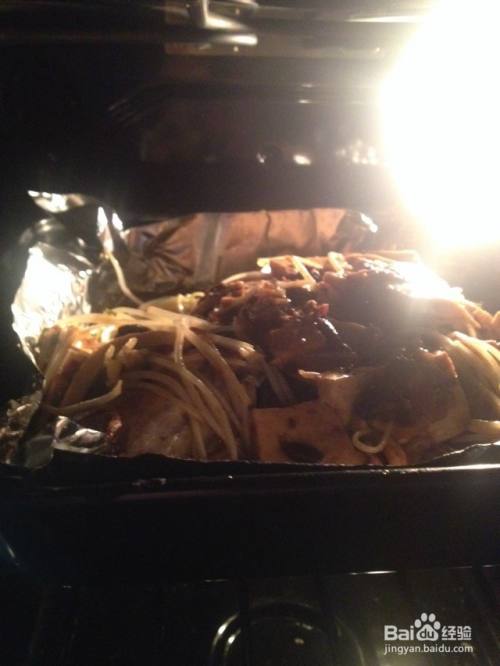 放入烤箱180-200度烤25分钟。我家厨房的灯坏了,光线很不好,原谅我图片的质量哈~