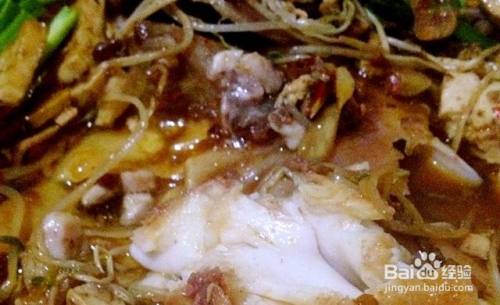 放入豆瓣酱,自制老干妈,我还将剖鱼时留下的鱼肚等放入一起煸炒了。再放入豆腐、酱油、蒸鱼豉油稍稍煨煮一会,最后放入豆芽拌一下就行。请原谅我忘记照相了