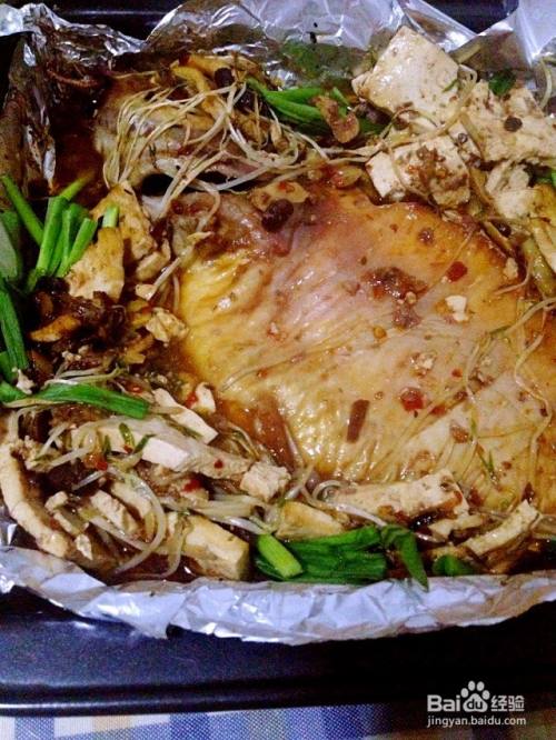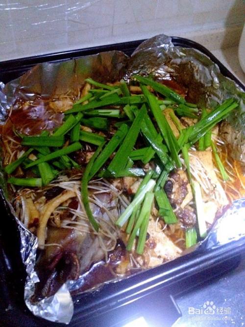 将炒好的蔬菜全部倒入鱼中,入烤箱再次烤10分钟即可