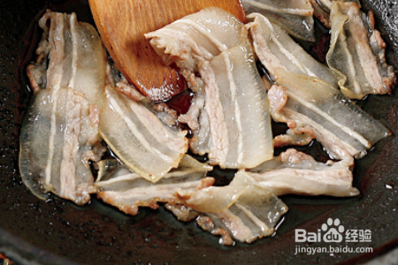 将花菜洗净掰成小瓣,青蒜切段,蒜切成片,朝天椒切段,五花肉切成薄片,肥肉切薄片备用。