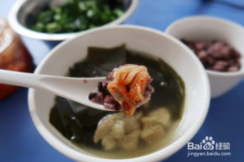 一口杂粮饭加一勺咸鲜海带汤再加上一块泡菜~别提多美味了~