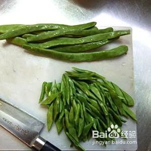 首先将扁豆去两头和筋,洗净后斜切成片。