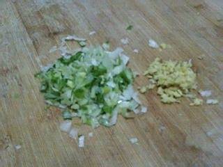 再原锅留少许底油,复置火上烧热,下葱姜末爆香。