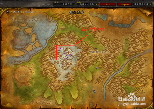 “破碎岭虐待者”位于奥特兰克山脉的“奥特兰克废墟”,具体位置如图所示。