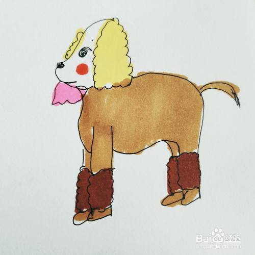 第五步,我们来拿出画笔为卡通小狗涂上颜色。