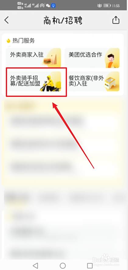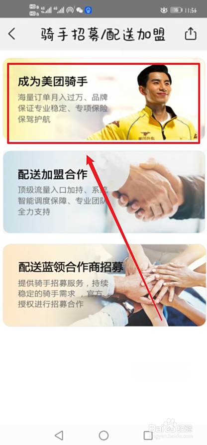 打开美团,依次点击我的、商机/招聘、外卖骑手招募/配送加盟、成为美团骑手,填写个人信息后点击报名加入,就可以加入美团外卖送餐员兼职。
