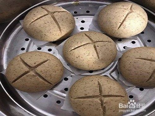 依次将面剂双手揉圆,用刀在上方切一个“十字”(十字花刀),这样生胚就做好了。帘上铺上屉布,如果没有可以在帘上刷油,防止面团在蒸的时候粘。依次放入蒸锅中,盖上盖子二次醒发10-15分钟。
