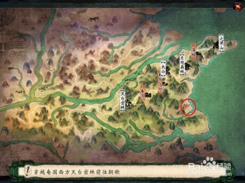 先来张大地图位置。在奄国接到任务的后,可先出奄国,再来到大地图所示位置找到解鹰。也可以等到在行馆休息出来后再去也可以。
