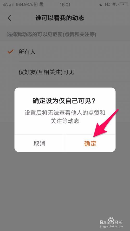 将会弹出一个提示框“确定设为仅自己可见?”,点击“确定”;