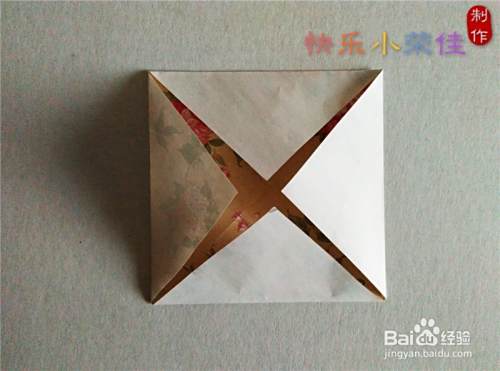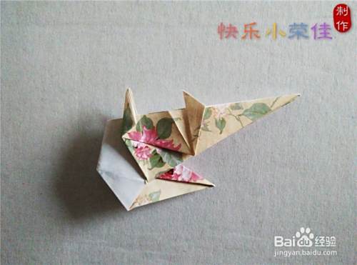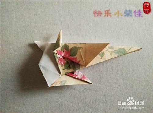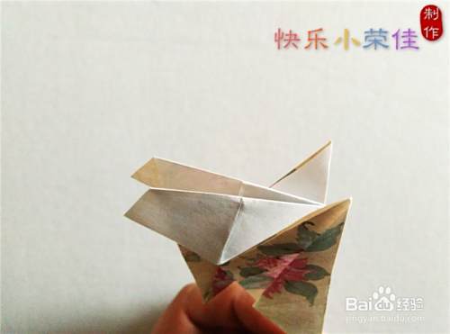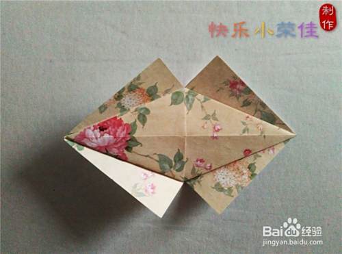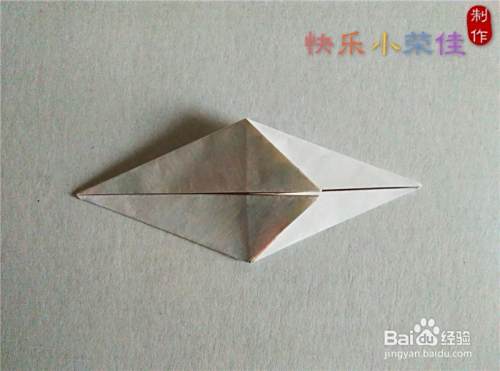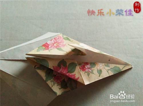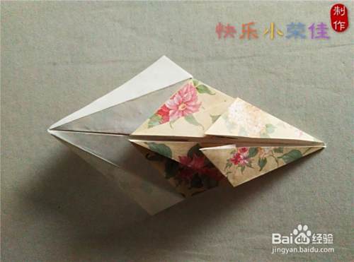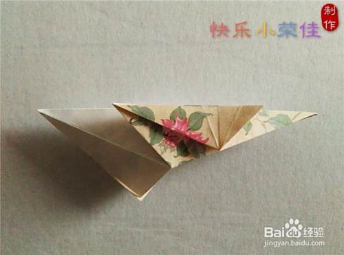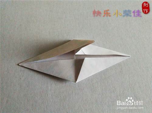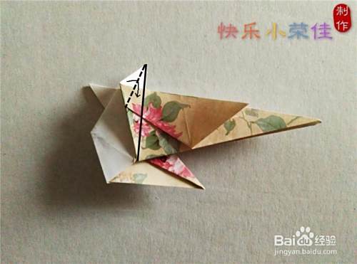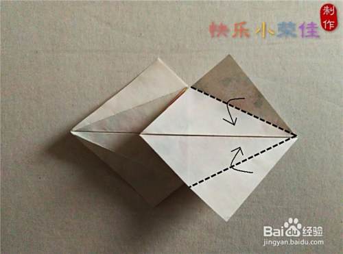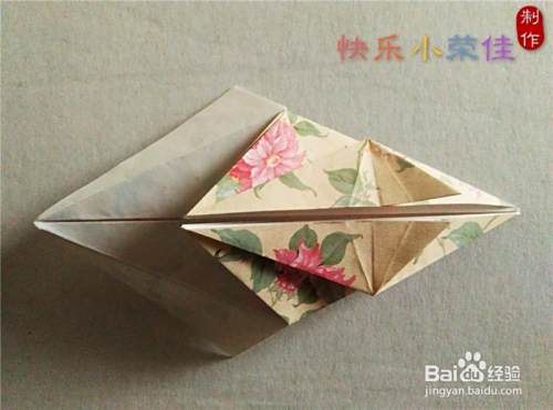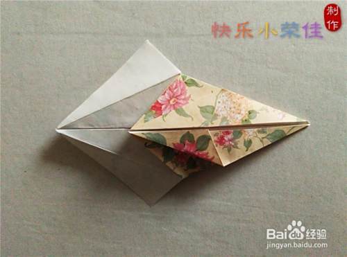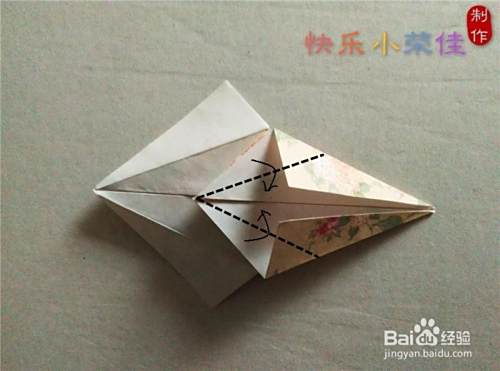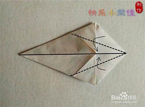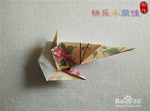 后面的三角也同理折好,右侧沿虚线向左折叠。