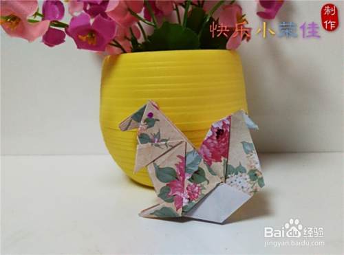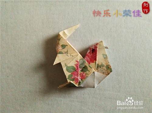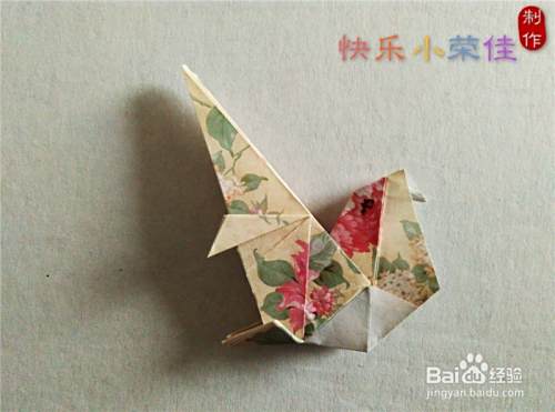 再往前翻一下,然后顶端再向里折叠一小段,小松鼠就做好了。