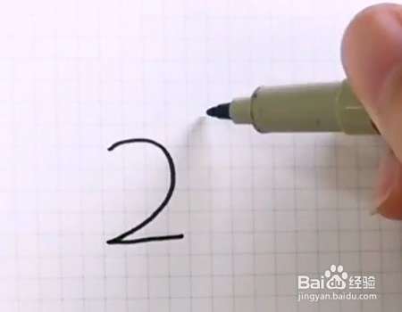 再写一个阿拉伯数字“2”,第二个2比第一个大一点点,然后用弧线把顶部连接起来。
