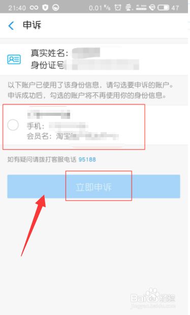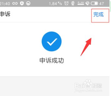 最后在页面中,选择我们要取消的关联的账户,并点击【立即申诉】随后出现申诉成功页面,点击完成就好了。