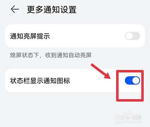 进入华为手机设置中的通知,进入更多通知设置,即可开启状态栏显示通知图标。