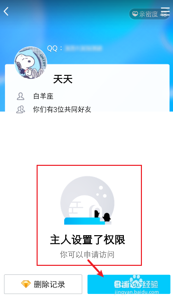 在他的QQ空间,如果显示需要【申请访问】,说明空间屏蔽了你了。