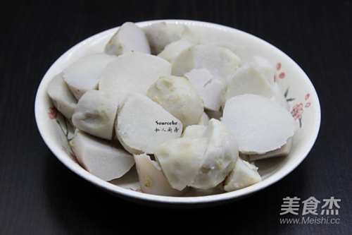 3煮熟的小芋头,去皮,切块;