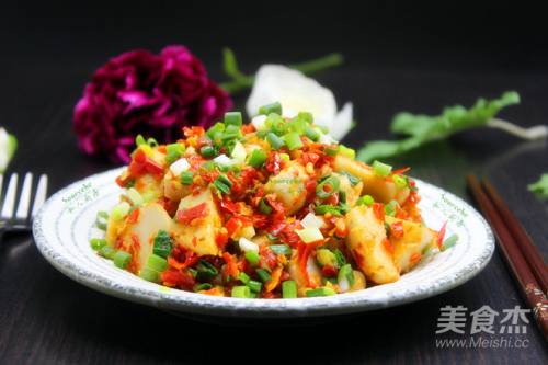 6加入酱油翻炒入味;