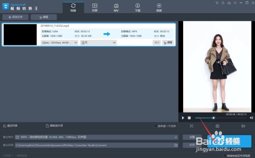 返回到主界面后,下方选择保持源视频尺寸,点击“转换”就可以保存文件了。