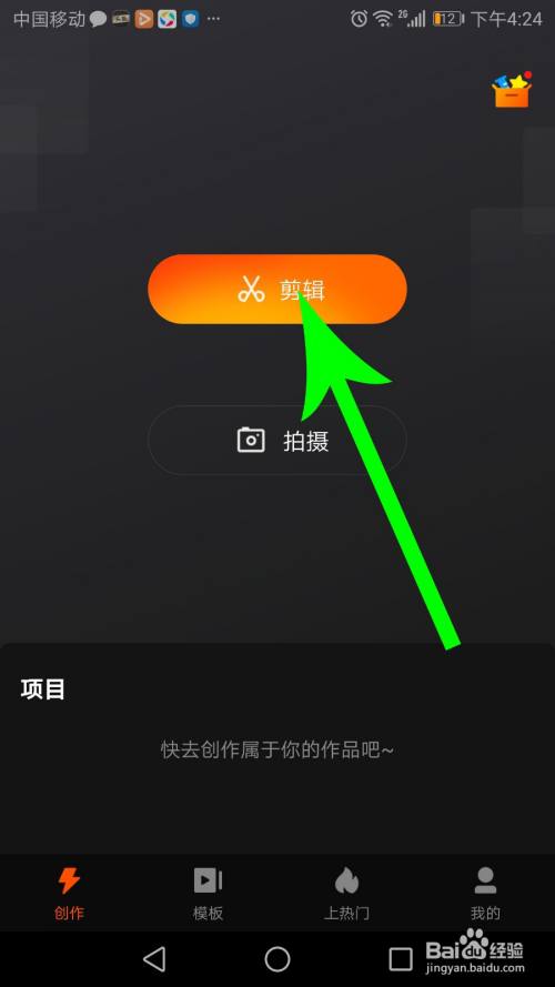 打开快影首页,然后点击“剪辑”。