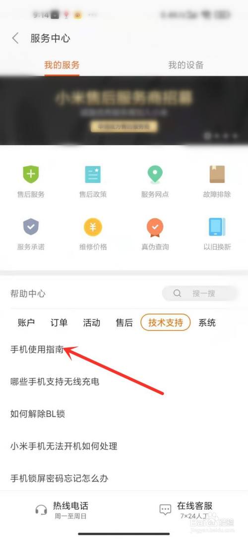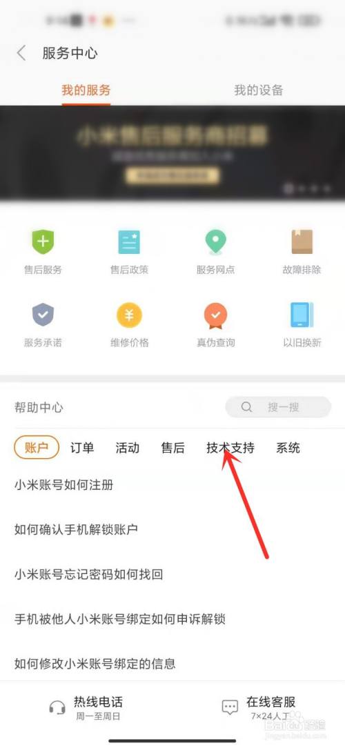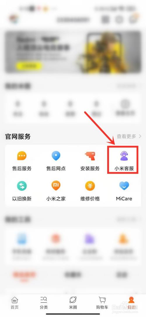 点击“官网服务”下面的【小米客服】,进入服务中心。