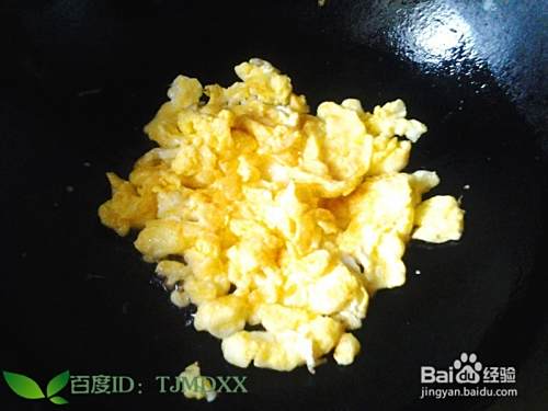 炒菜锅加入适量的植物油烧至7成熟,中火放入搅均匀的鸭蛋液,用铲子快速翻搅均匀出锅。