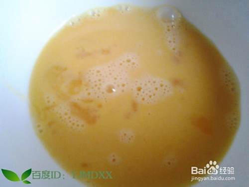 取新鲜的鸭蛋3个,打散到碗里,用筷子搅均匀备用。