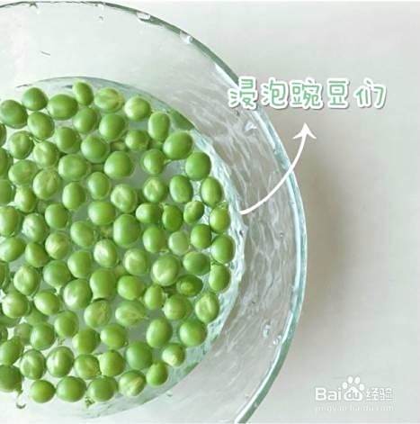 把豌豆放入淡盐水或撒入贝壳粉浸泡5分钟。