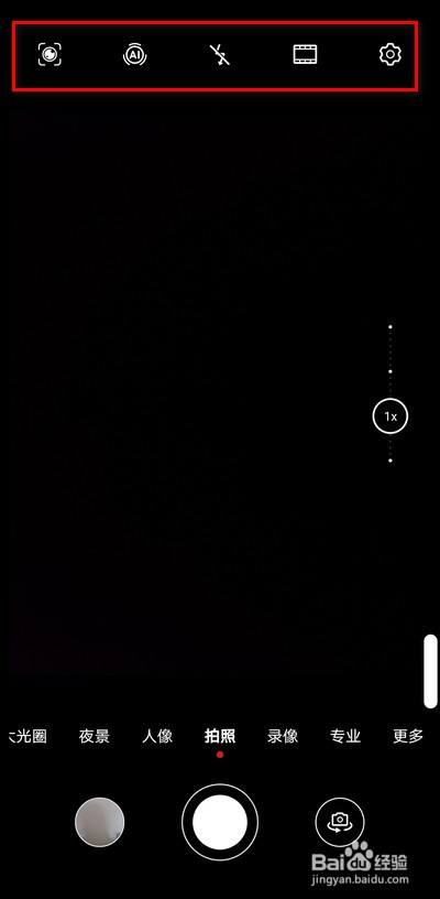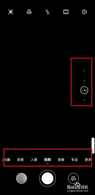 相机下面的选项栏,可以选择拍照的对应模式,右边可以设置调节焦距。
