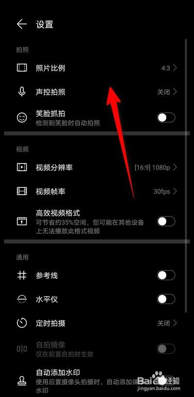 点击一下设置选项,可以打开相机设置页面。