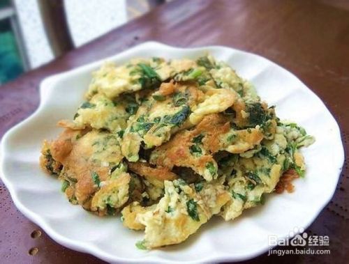 锅中放油,八成热时放入搅拌好的春芽蛋液。