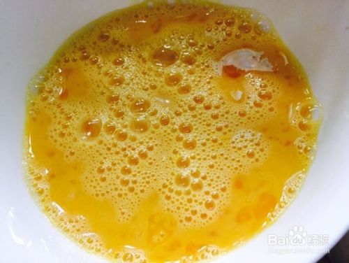 鹅蛋打入碗中,加少许食盐和白胡椒粉,调匀。
