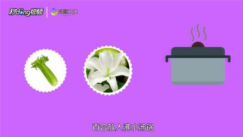 3把西芹和百合放入沸水汤锅,烫至快熟时捞起。