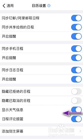 之后将显示天气信息的滑动按钮向左滑动,滑动完成后便可以关闭显示天气信息。