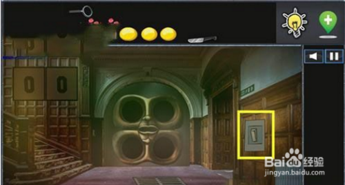右边拿到地上的金币与石头,墙上看到时间提示并拿到两个指针。左边拿到两个金币。拉开海报看到另一个时间提示。用石头将钟的玻璃打碎。