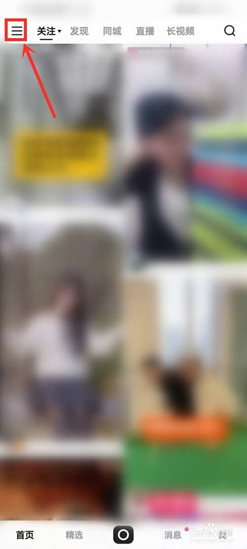 打开快手首页,点击左上角【三横】图标。