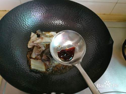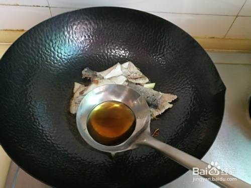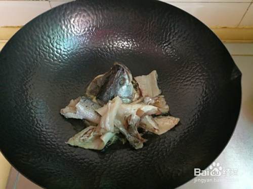 将鲈鱼头和尾部放入锅中