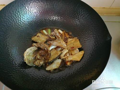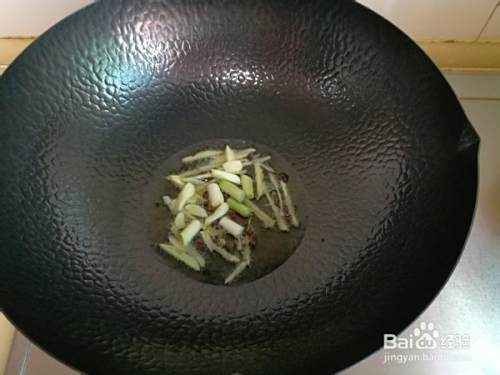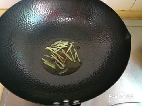 然后将姜丝放入锅中