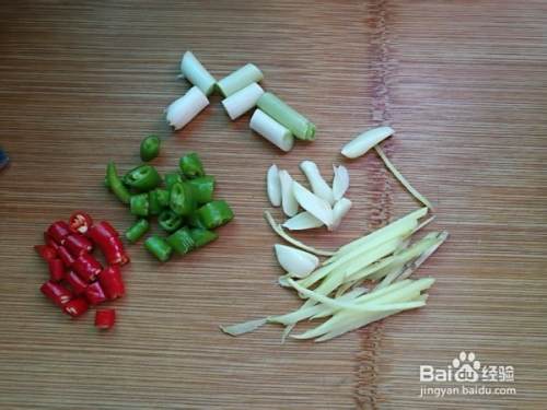 小米椒切小丁,姜切丝、大蒜切片、葱切小段