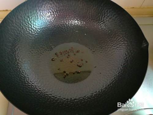锅中放入适量调和油,油热后将花椒放入锅中炸出香味